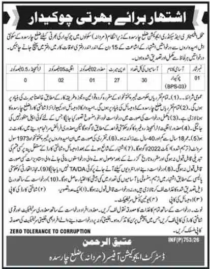 The District & Sessions Court Rahim Yar Khan has announced a new vacancy for the post of Chowkidar (BPS-03). This is an excellent opportunity for candidates who are seeking government jobs in Punjab, especially those with local domicile of Rahim Yar Khan.