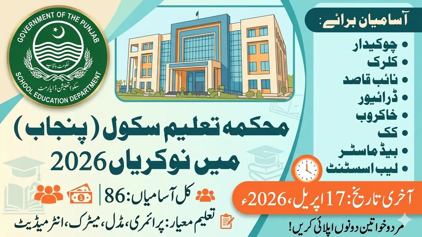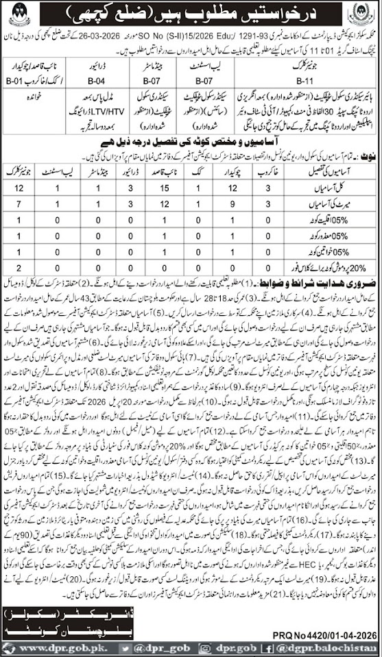 The Education Department has announced new government job opportunities for non-teaching staff in Kachhi District. These vacancies are open for eligible candidates holding the required educational qualifications and domicile of the respective district.