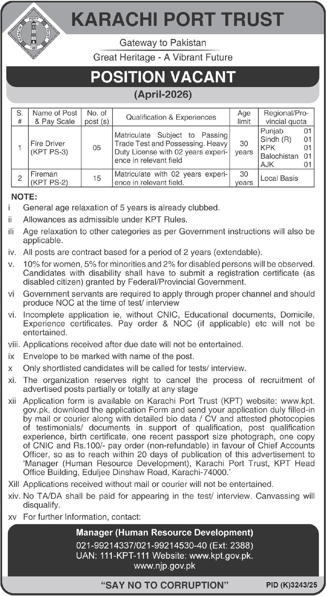 To apply for these vacancies at Karachi Port Trust, follow these steps: