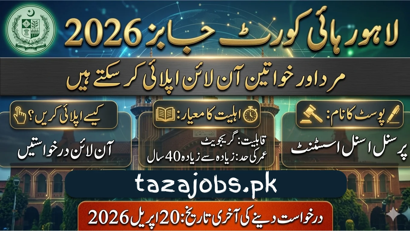 The Lahore High Court has announced new government job opportunities through Advertisement 03/2026/R&E. Applications are invited from eligible candidates domiciled in Punjab for the post of Assistant (BS-18). This is an excellent opportunity for graduates seeking a stable and prestigious government career in Pakistan.