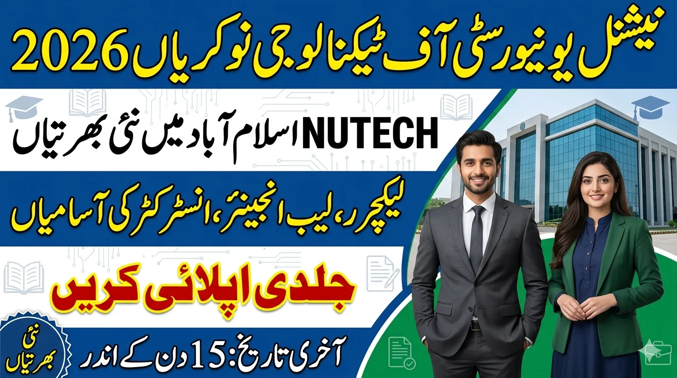 The National University of Technology (NUTECH) has announced multiple job openings for qualified and motivated candidates. This is an excellent opportunity for individuals seeking careers in academia, technical roles, and administrative support within one of Pakistan’s leading technology-focused universities.