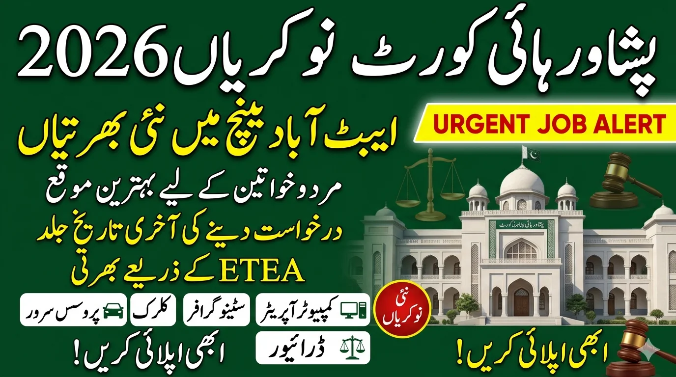 The Peshawar High Court Abbottabad Bench jobs offer a valuable opportunity for candidates seeking stable government careers in Pakistan. With positions available for both fresh graduates and experienced professionals, applicants are encouraged to apply promptly and prepare thoroughly for the ETEA test.