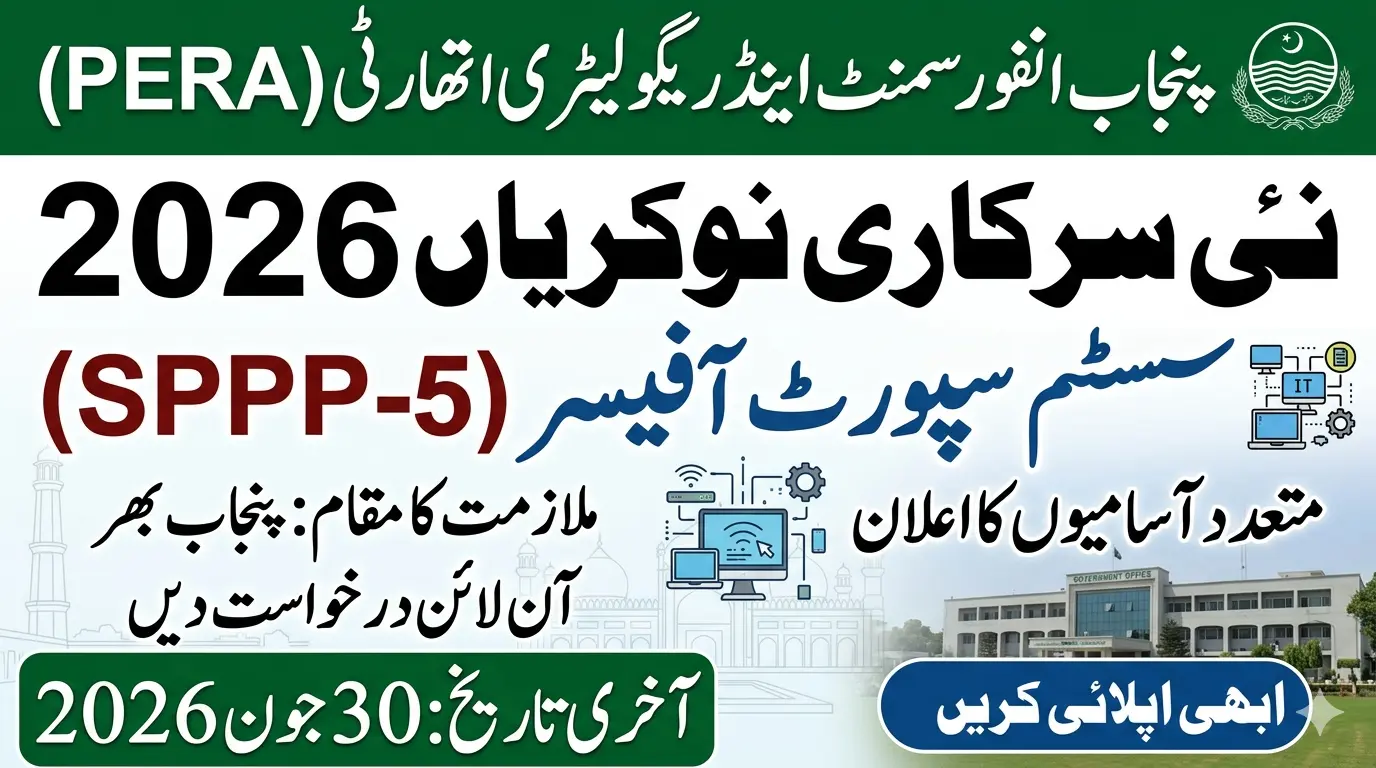Punjab Enforcement & Regulatory Authority (PERA) Jobs 2026 – Apply Online for System Support Officer