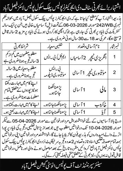 This is a great opportunity for qualified teachers and skilled workers to join a reputable institution in Faisalabad. Candidates are encouraged to apply within the deadline and ensure that all required documents are submitted properly to avoid disqualification.